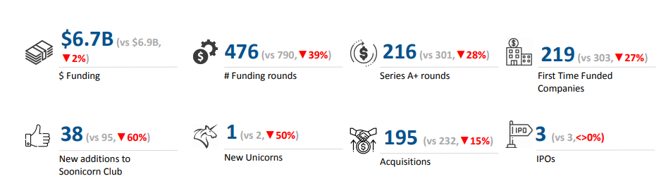 The UK is the second-highest funded tech startup ecosystem in H1 2024, after the US. The UK Tech space secured funding worth $6.7 billion in H1 2024, only 2 % lower than the $6.9 billion raised in the first half of 2023. However, this is a 12% drop from the $7.7 billion raised in H2 2023.
