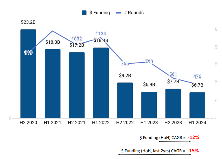 The quarter-wise comparison paints a promising picture, with funding rising 27% to $4.41 billion in Q2 2024 from $3.47 billion in Q2 2023. This is also a 62% jump from the $2.71 billion raised in Q1 2024.
