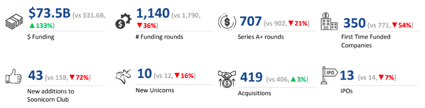 10 unicorns were created in Q1 2025, a 16% decrease from 12 in Q1 2024. Companies that went public in this quarter included CoreWeave, NeOnc Technologies, Kestra Medical Technologies, and Brag House.